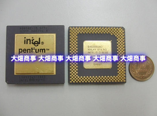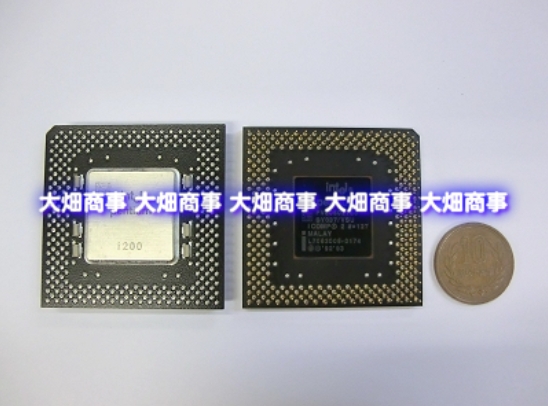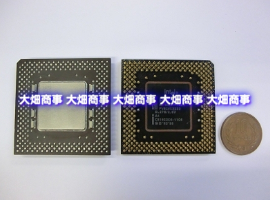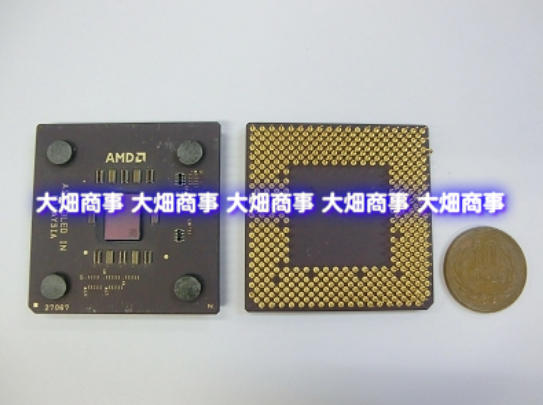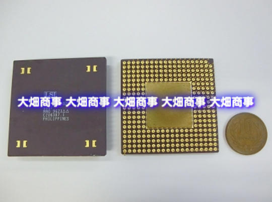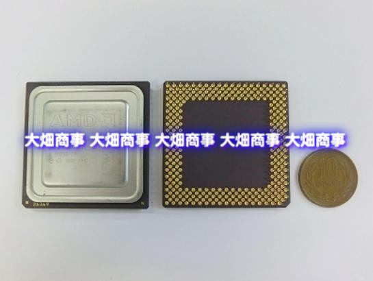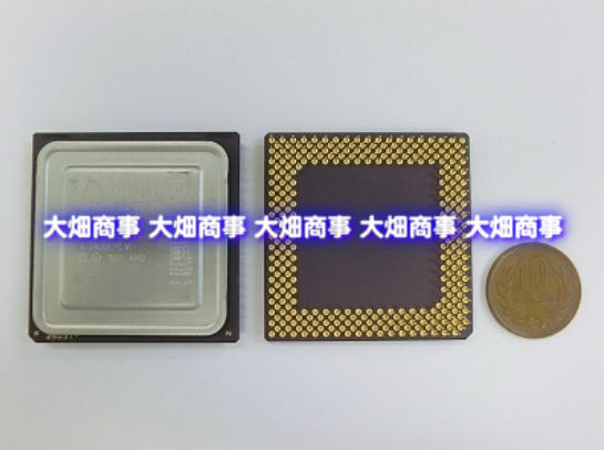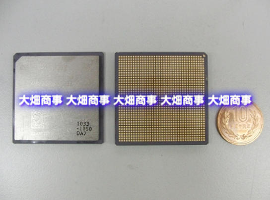 This is a ceramic package with pins arranged in a grid pattern on the underside. It is also called a Ceramic Pin Grid Array (CPGA). Among these, AMD products (K6, K6-2, K6-III, Athlon, Duron, etc.) and those with heat spreaders typically have a lower gold yield.