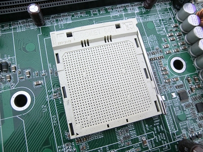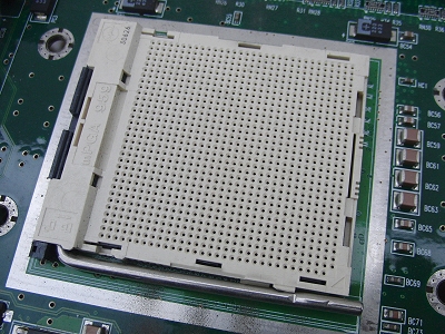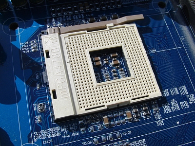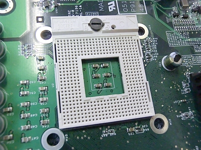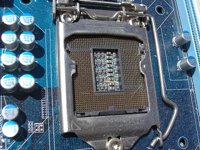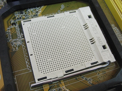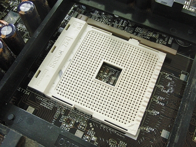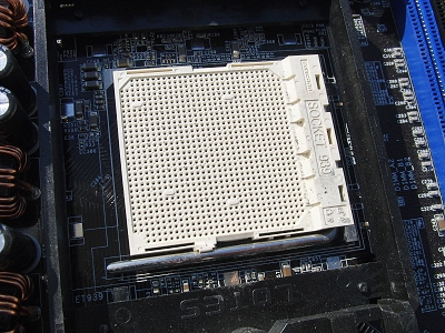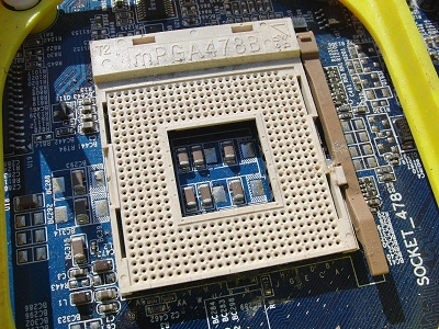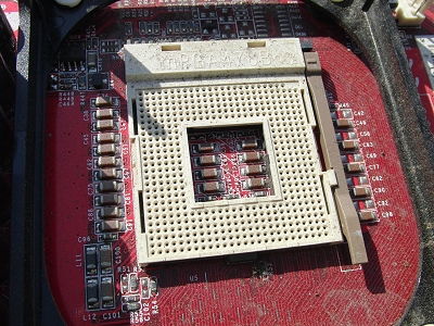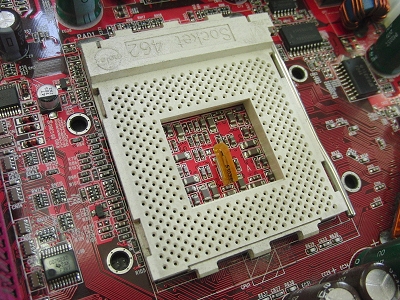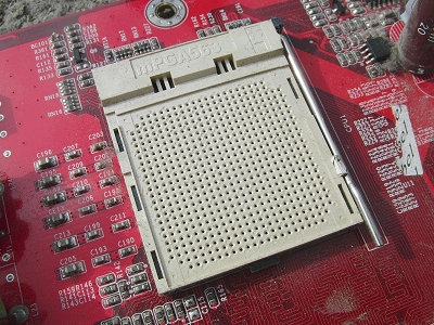 CPU removed from the motherboard (the square part at the top of the photo)